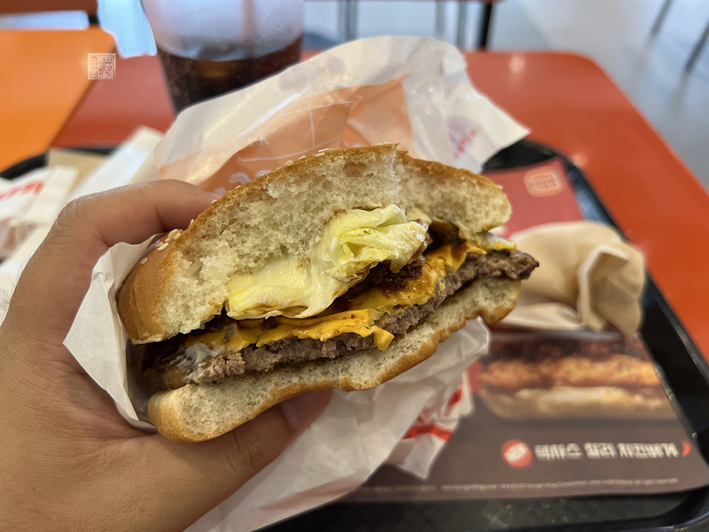 다소 비주얼은 이미지와 비교했을 떄 아쉬움이 있었어도 맛 자체는 괜찮았다. 버거킹에서 판매하는 햄버거는 맛이 없는 경우가 거의 없기도 하지만, 텍사스 칠리와퍼에 들어가 있는 살짝 매콤한 맛이 딱 좋았던 칠리소스가 치즈와 패티의 느끼한 맛을 제대로 잡아주면서 콜라와 함께 마지막 한입까지 맛있게 먹을 수 있도록 해주었다.