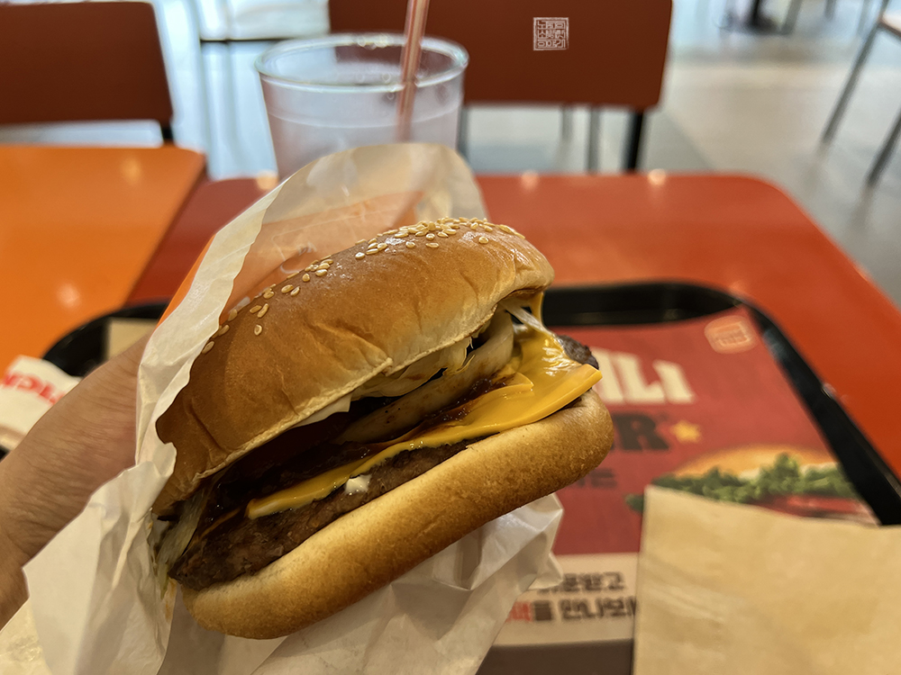어제 한동안 내리던 장맛비가 잠시 소강상태를 보인 점심때를 맞아 버거킹을 찾았다. 처음에는 평소처럼 몬스터 와퍼 세트를 주문해서 먹으려고 했지만, 이번에 버거킹에서 새롭게 나온 텍사스 칠리와퍼에 잠깐 흥미가 생겨서 이번에는 신 메뉴를 한번 먹어보기로 했다. 칠리소스가 들어간 제품이다 보니 살짝 매콤한 맛이 딱 좋을 것 같았다.