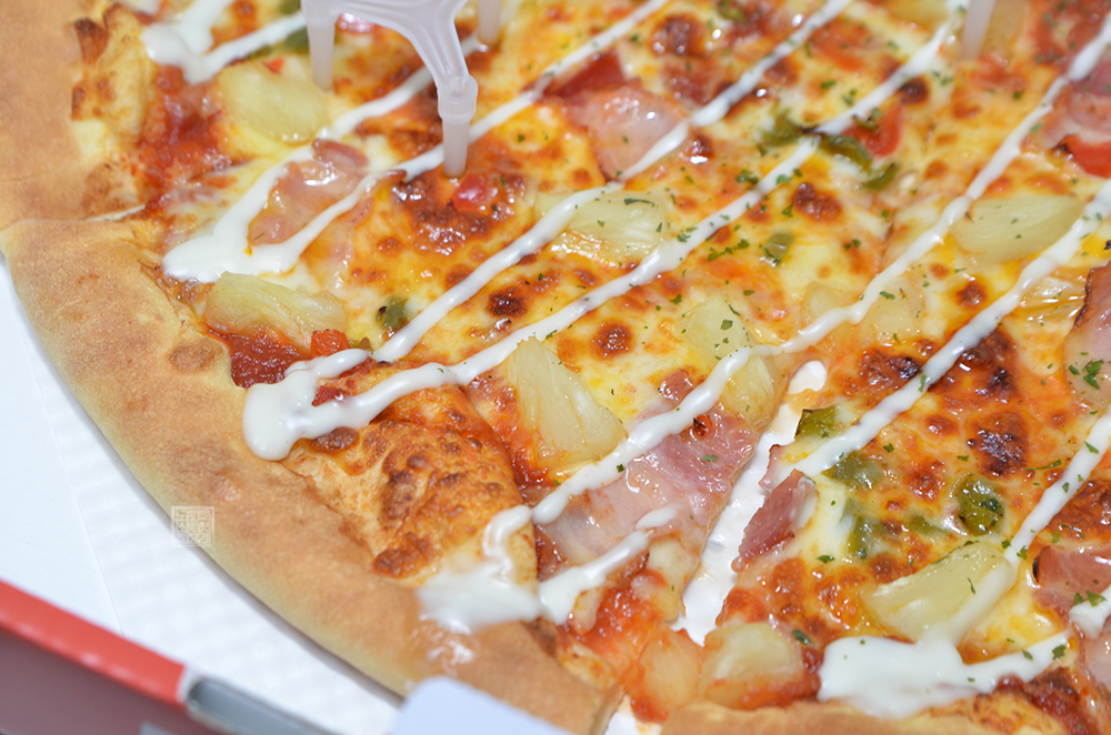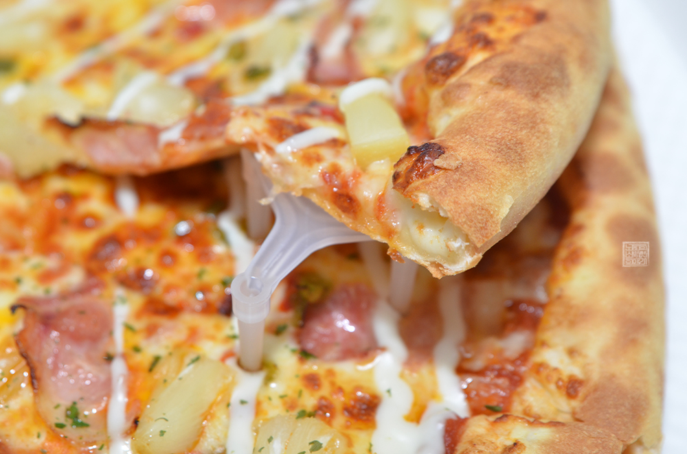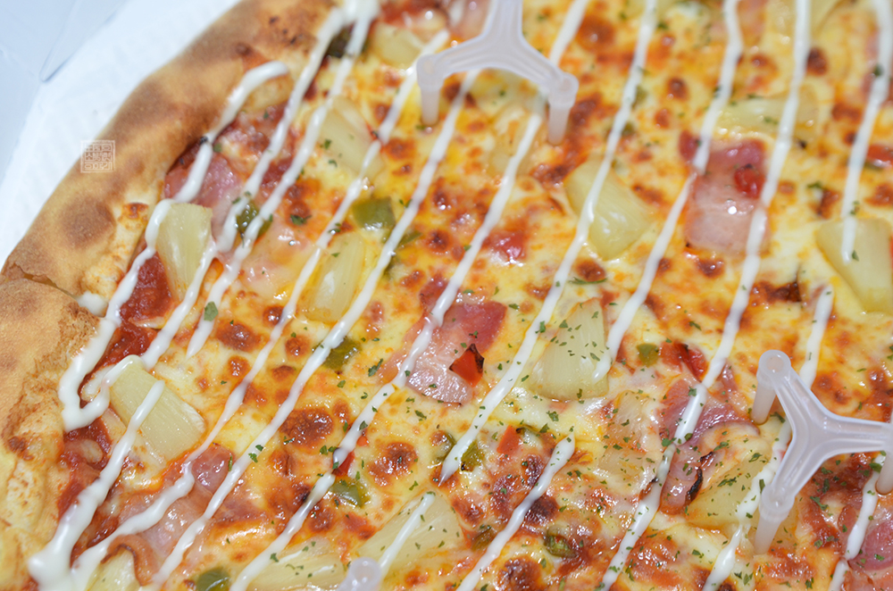 그런데 하와이안 피자가 속한 카테고리는 XXXL 사이즈가 기본이었기 때문에 나는 당연히 다른 프랜차이즈 브랜드에서 주문할 때 받아볼 수 있는 L 사이즈라고 생각을 했다. 하지만 막상 받아본 피자는 그 크기가 18인치(지름 약 45cm)이다 보니 상당히 컸다. 타 부가 메뉴가 없더라도 2~3명이서 충분히 배부르게 먹을 수 있는 크기였다.
