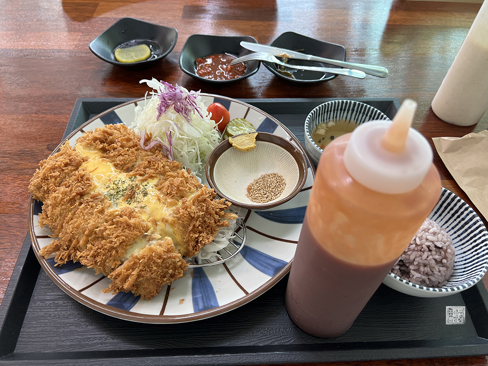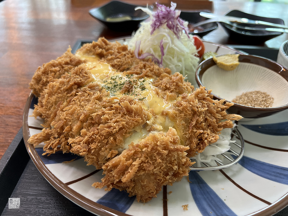 경양식 돈까스와 달리 프리미엄 치즈까스는 이미 돈까스가 잘려진 상태로 나오기 때문에 따로 칼질을 할 필요는 없다. 하지만 나누어져 있는 덩어리가 한 입에 넣어서 먹기에는 어중간한 크기이다 보니 칼질이 살짝 하고 싶을 수도 있다. 문제는 일식 돈까스 스타일로 나온 프리미엄 치즈 돈까스는 칼질이 어렵게 그릇에 놓여 있다는 점이다.