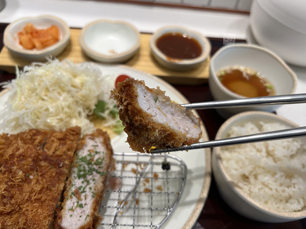 고기도 잘 익어 있는 데다가 육즙도 충분히 있어 퍼석퍼석한 느낌이 없었고, 튀김도 바삭해서 평소 1만 원이 넘어가지 않는 가격에 만족할 수 있는 일식 돈가스를 찾는 사람에게 추천이 아깝지 않았다. 이 기본 돈가스를 베이스로 해서 체다 크림 치즈를 뿌리면 체다 크림치즈 돈가스가 되고, 매운 소스를 뿌리면 매운 돈가스가 되는 듯했다.