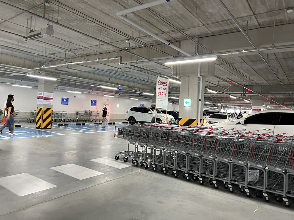 처음 코스트코 김해점이 오픈을 할 때는 어머니가 근처에 내려주시고 가셨기 때문에 바깥에서 줄을 서 있다가 매장으로 들어 갔었는데, 이번에는 지상 주차장(정확히는 옥상 주차장)을 이용해서 코스트코 매장으로 들어갔다. 당시 김해 코스트코를 찾았던 시간이 오후 3시 정도였는데도 주차장은 빈 곳을 찾기가 힘들 정도였다.