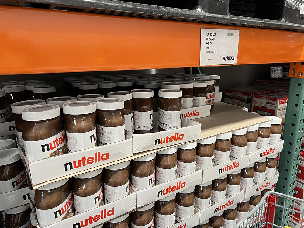 그렇게 과자 코너를 중심으로 시계 방향으로 천천히 주변을 둘러보니 악마의 잼으로 불리는 누텔라도 기본적으로 1kg 단위로 판매가 되고 있었다. 누텔라 1kg이 9,490원에 책정되어 있었는데, 이는 쿠팡이나 다른 사이트에서 구매하는 것보다 가격이 저렴한 편이었기 때문에 정말 누텔라 하나를 구매해서 오랜 시간 동안 먹고 싶기도 했다.