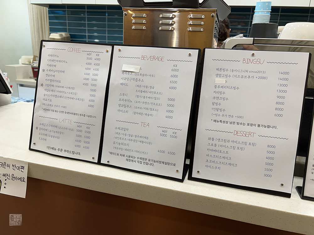 동네한바퀴의 얼굴이라고 말할 수 있는 메론빙수만 아니라 딸기빙수도 다른 사람들의 후기 사진을 보면 정말 맛있어 보였는데, 지난 일요일(4일)에 방문했을 때 딸기빙수는 판매를 하고 있지 않았다. 아마 딸기 수급이 어려운 계절이 된 탓이라고 생각하는데, 딸기가 나오는 계절에 재차 동네한바퀴를 찾아 그때는 딸기빙수를 먹어보고 싶다.