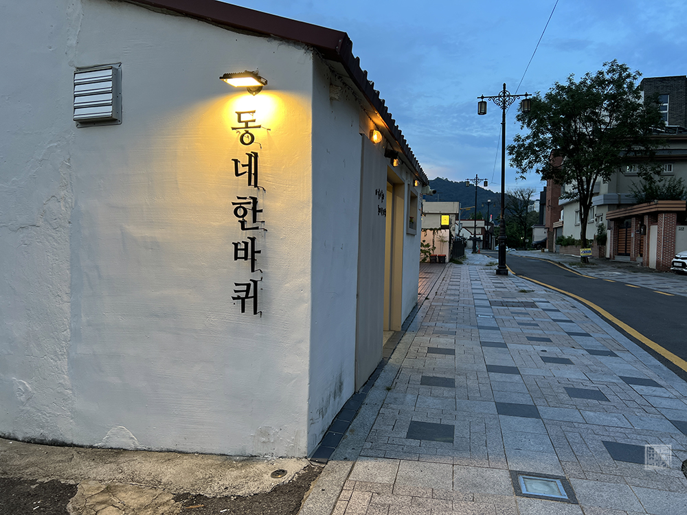 카페 동네한바퀴의 간판을 비추는 작은 조명과 어스름해진 하늘이 무척 잘 어울렸고, 카페 내부에서 볼 수 있는 카페의 전체적인 모습도 낮에 방문했을 때와 다른 분위기를 보여주고 있었다. 역시 경치 좋은 카페는 낮에 방문해 경치를 보는 즐거움이 있다면, 거리에 있는 카페는 낮과 밤 사이의 시간에 방문해 보는 즐거움이 있는 듯하다.