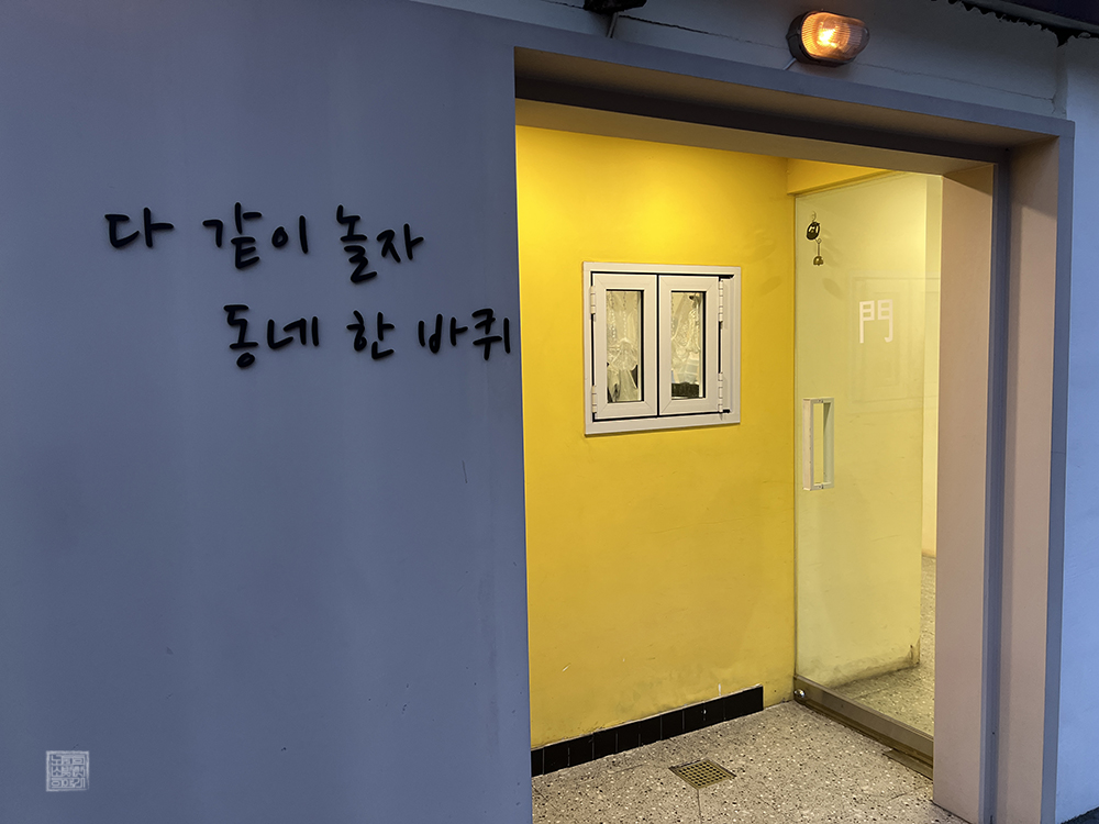 무엇보다 동네한바퀴가 보여주는 풍경은 낮만 아니라 낮과 밤 사이의 저녁, 그리고 밤이 깊어지고 있을 때도 조명과 함께 소박하게 운치 있는 분위기를 띠다 보니 동네 사람들이 자주 찾는 곳이라고 생각한다. 카페 간판에 적힌 그대로 '다 같이 놀자~ 동네 한 바퀴'라는 말 그대로인 카페라고 말할 수 있는 곳이다. 사진만 봐도 딱 그런 느낌이다.