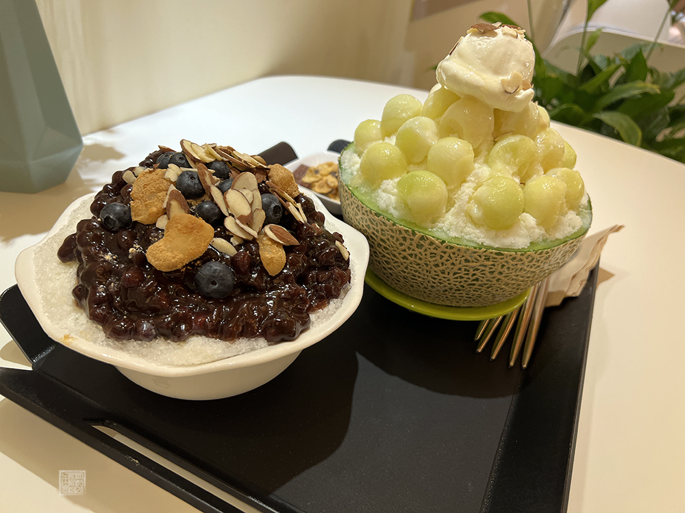 당일 우리가 주문한 건 일반 팥빙수 한 개와 동네한바퀴의 얼굴로 불리는 메론 빙수다. 총 다섯 명이 카페를 찾았다 보니 처음에는 빙수를 세 개 정도 주문할 생각이었지만, 간단히 저녁을 먹은 이후에 카페를 찾은 터라 두 개 정도면 충분하지 않을까 싶어서 팥빙수 한 개와 메론 빙수를 주문했다. 빙수의 양이 적지 않아서 딱 알맞은 선택이었다.