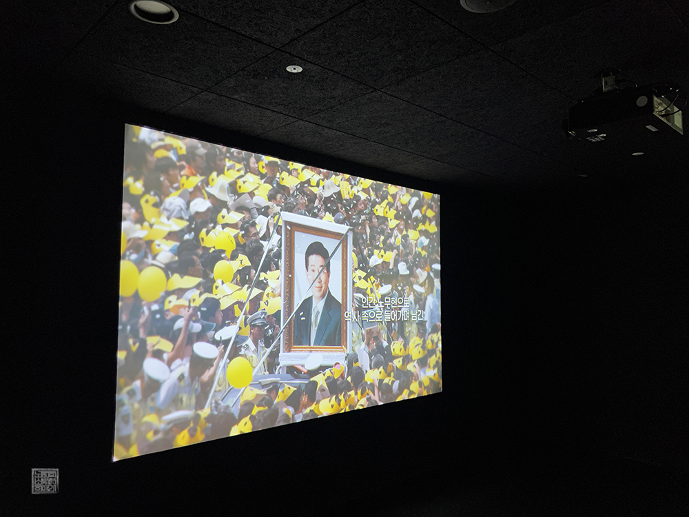 10번 전시관을 지나 무거운 발걸음을 옮기면 커다란 스크린에 띄워진 고 노무현 전 대통령의 사진을 보는 것으로 전시관 투어는 막을 내린다. 1번 전시관부터 10번 전시관을 보면서 우리는 한국의 민주주의 역사만이 아니라 한국의 민주주의를 위해 부단히 애썼던 고 노무현 전 대통령의 지나간 모습을 가슴 깊이 새길 수 있다.
