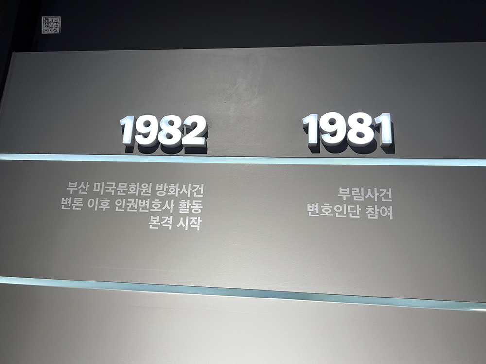 아마 영화 <변호인>에서 소개가 되었던 군사 정권 시절의 부림 사건과 관련된 내용도 전시실에서 만나볼 수 있었다. 영화 <변호인>에서 고 노무현 전 대통령의 역할을 맡았던 배우 송강호 씨가 "국가가 뭔지 몰라?"라는 호통에 "압니다! 대한민국 주권은 국민에 있고, 모든 권력은 국민으로부터 나온다. 국가란 국민입니다!"라고 외치는 장면.