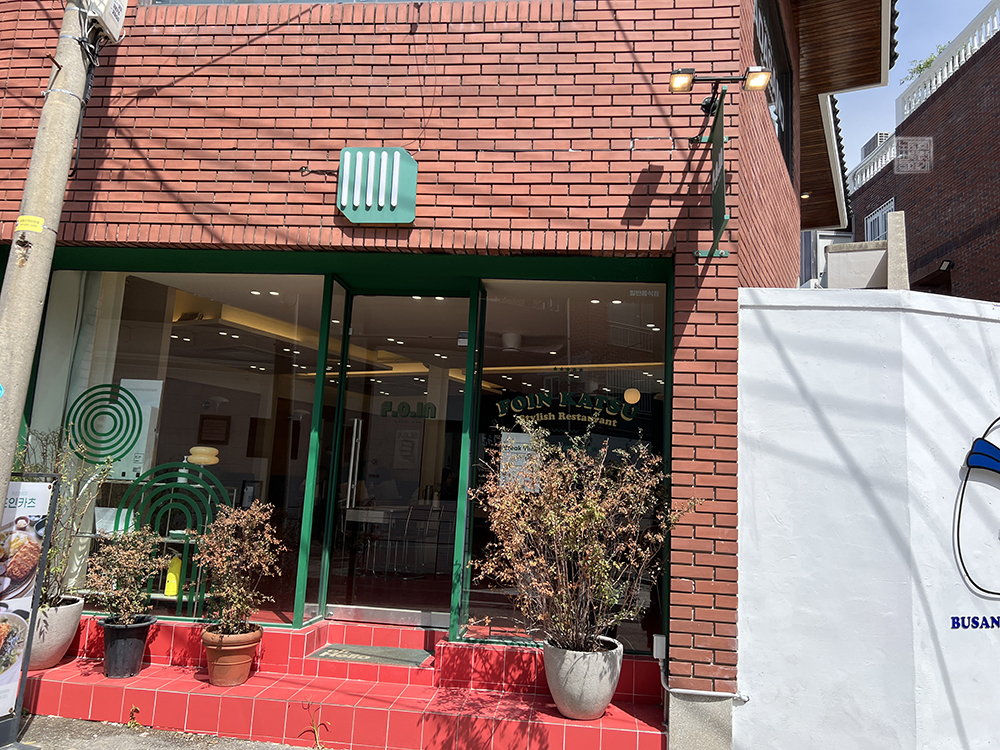 해운대 4번 출구에서 해리단길로 건너가 조금 걸으면 만날 수 있는 해운대 돈가스 맛집 포인카츠는 가게의 입구에 커다랗게 '포인카츠'라는 간판을 달고 있지 않다. 옛날에는 분명히 주거용 주택으로 사용했을 다세대 주택의 1층에 포인카츠가 위치해 있는데, 간판은 위 사진에서 볼 수 있는 초록색 배경에 흰색 줄 다섯 개가 그어져 있는 게 전부다.