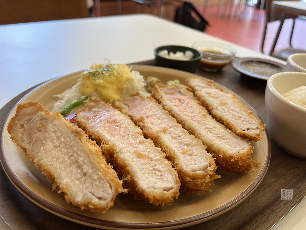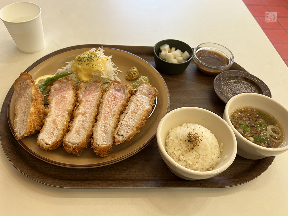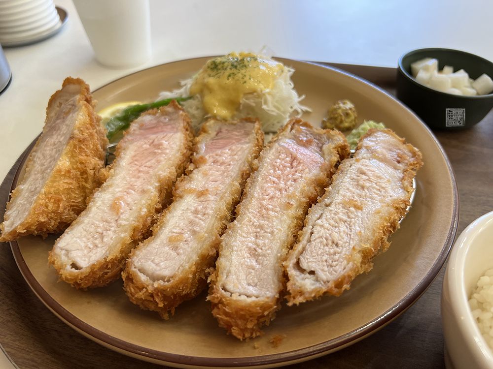 특등심카츠는 사진에서 볼 수 있듯이 먹음직스러운 모습으로 다섯 개의 조각으로 제공된다. 하지만 가게에서는 돈가스를 자를 수 있는 도구인 포크와 나이프를 제공하고 있지 않고 있는데, 평소 돈가스를 작게 잘라서 먹는 것을 좋아하거나 돈가스를 먹을 때 포크와 나이프를 이용해서 자르는 즐거움을 추구하는 사람들은 다소 아쉬울 수도 있다