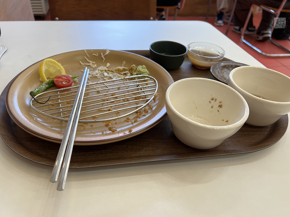 그렇게 특등심카츠의 모든 것은 만족스러웠던 포인카츠였지만, 한 가지 아쉬운 점이 있다면… 가게의 스피커에서 들리는 락인지 알 수 없는 시끄러운 음악이었다. 처음 매장에 들어와 앉아있을 때부터 귀가 찢어질 듯한 음량으로 들리는 시끄러운 음악은 계속해서 거슬렸는데, 돈가스를 먹는 동안에도 몇 번이나 음악이 신경을 곤두서게 했다.