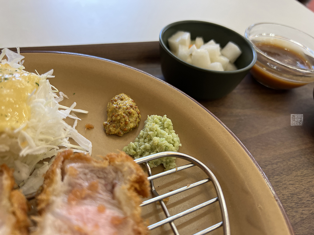 실제로 포인카츠의 특등심카츠는 돈가스의 고기 식감이 무척 부드러워 다소 구강구조가 베어 먹는 데에 적합하지 않은 나도 잘 베어 먹을 수 있었다. 그리고 돈가스와 함께 받을 수 있는 양배추 샐러드의 유자 소스도 맛있었고, 돈가스를 함께 제공되는 기본적인 소스, 소금, 겨자, 와사비 네 가지를 이용해서 마지막 한 입까지 맛있게 먹을 수 있었다.