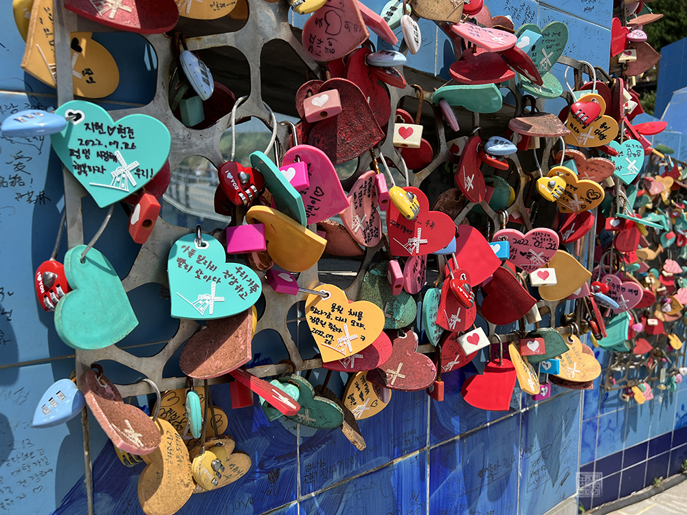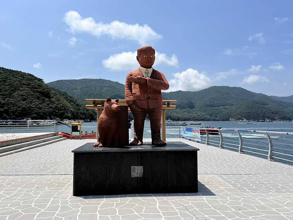 해당 쉼터로 가보기 위해서 바람의 언덕에서 도장포 마을로 내려온다면, 지금은 상당수 헤어졌을 것으로 보이는 연인들이 묶어 놓은 자물쇠들이 가득한 곳을 비롯해 누구인지 잘 알 수 없는 사람과 개 동상이 세워져 있다. 여기서 우리는 도장포 마을로 향하는 길과 바다쪽을 향해 난 다리를 건너 '바람의 쉼터'라는 곳으로 잠깐 걸어볼 수 있다.