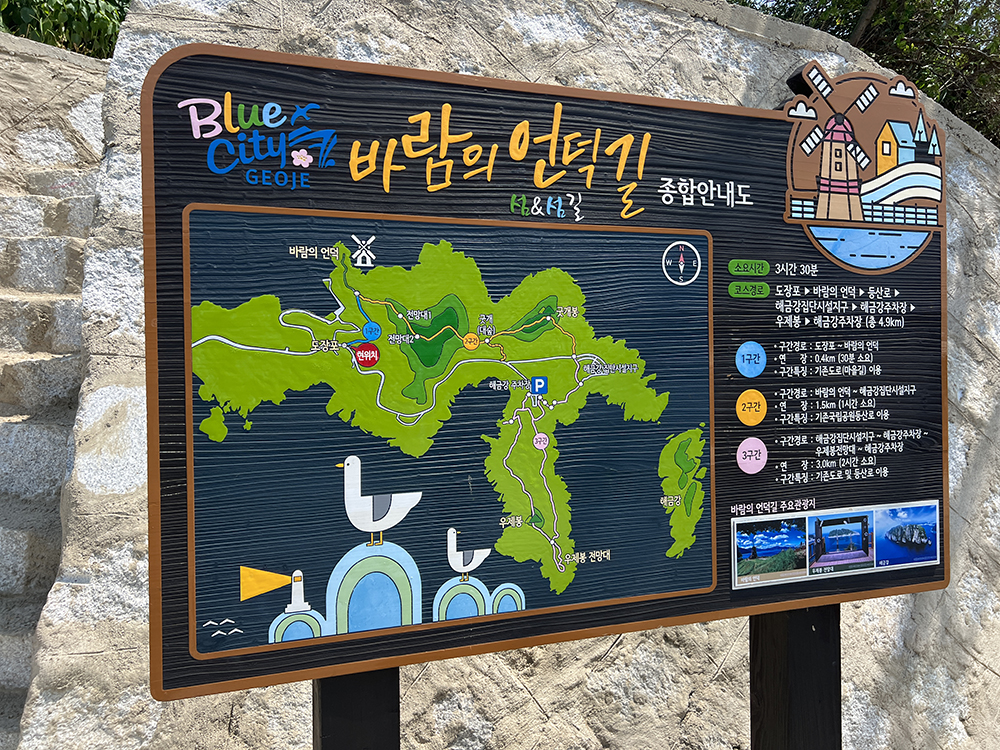거제도 바람의 언덕을 찾았을 때 어떤 코스를 돌아볼지는 순순히 개인의 몫이다. 거제도까지 왔으니 본전을 뽑아야겠다는 생각을 가지고 있다면… 총 소요 시간 3시간 30분이라고 말하는 1~3구간을 모두 돌아보는 것도 도전해볼 만한 선택이라고 생각한다. 나는… 굳이 그렇게까지 걷고 싶지 않아서 차로 이동할 수 있는 거리만 걸었다. (웃음)