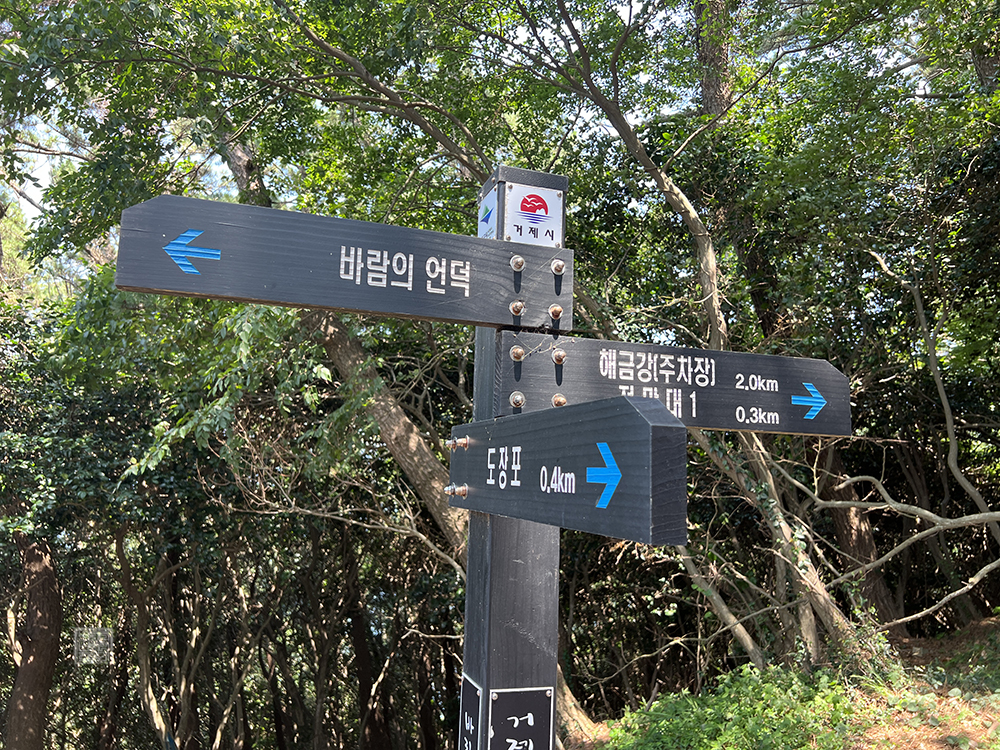 거기서 1구간의 코스인 '도장포-바람의 언덕'을 따라 간다면 위 사진처럼 도장포 마을을 보는 동시에 해금강 주차장과 전망대 등으로 나누어지는 길을 만날 수 있다. 처음 거제도 바람의 언덕을 찾는 사람들은 대체로 내비게이션에 '바람의 언덕'을 검색했을 때 나오는 도장포 마을 주차장으로 가기 마련이니 미리 길을 잘 찾아보도록 하자.