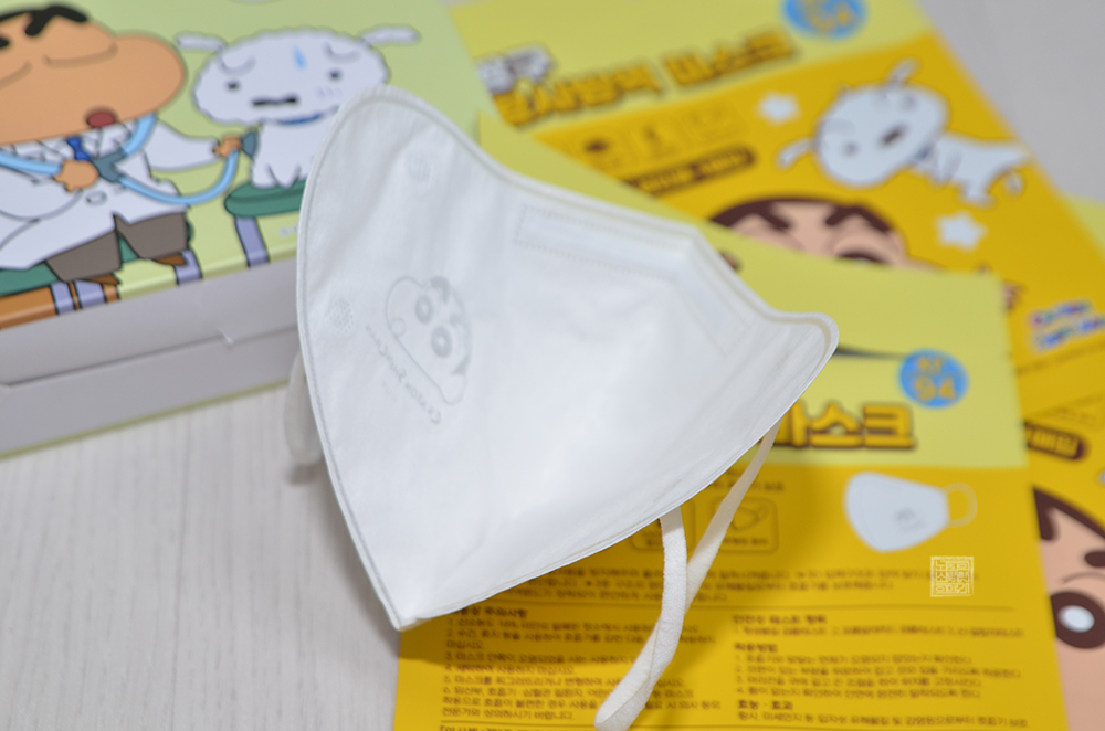 짱구 캐릭터 심벌은 마스크 오른쪽에 투명하게 박혀 있기 때문에 마스크를 유심히 살펴보지 않는 이상 마스크에 캐릭터가 그려져 있다는 것을 모르는 사람도 있을 듯했다. 물론, 마스크를 이렇게 바닥에 놓고 사진을 찍을 때는 안 보일 수가 없지만, 우리가 평소 마스크를 쓰고 생활할 때는 상대방의 마스크 자세히 보는 일이 드물다고 생각한다.