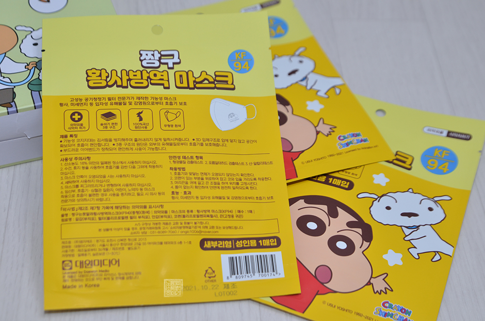 네고왕 대원미디어 편, 짱구 KF94 캐릭터 마스크 구매 후기