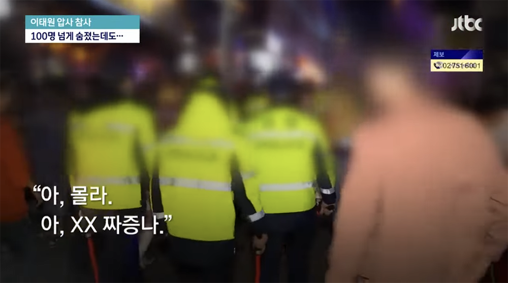 사고 현장에 있던 사람들은 이 사태가 얼마나 최악의 상황인지 직접 목격했기 때문에 도망치거나 쓰러진 사람을 구하기 위해서 자신이 할 수 있는 최선의 노력을 다했다. 처음 뉴스 보도를 통해 알려진 제보자들의 영상들은 사람들이 모두 한 마음 한 뜻이 되어 사람들을 구하기 위해 최선을 다하고 있었다. 하지만 바로 옆 골목은 전혀 다른 풍경이었다.