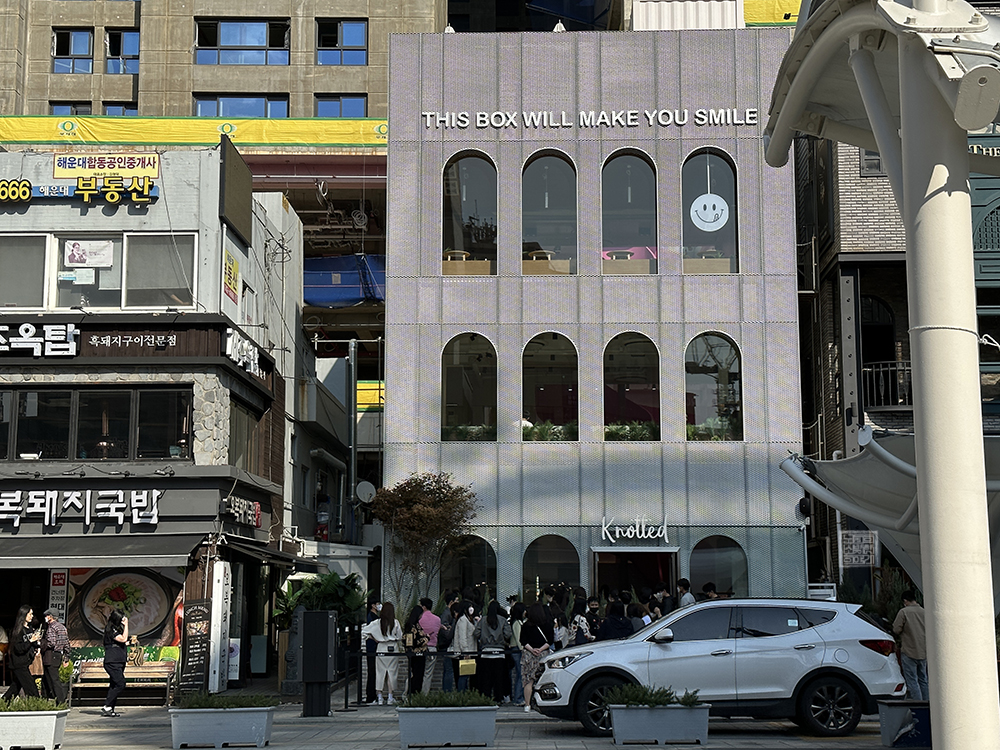 하지만 해운대구남로 문화광장을 따라 쭉 걷다 보니 어느 한 집에 사람들이 잔뜩 몰려 있는 모습을 볼 수 있었다. 겉으로 보기에는 평범한 카페로 보이는 건물이었는데, 건물의 유리창이 유럽의 창틀 디자인으로 되어 있는 것을 보니 아무래도 내부가 인스타그램 감성 카페로 사람들에게 소문이 나면서 젊은 커플의 발걸음이 이어지는 듯했다.
