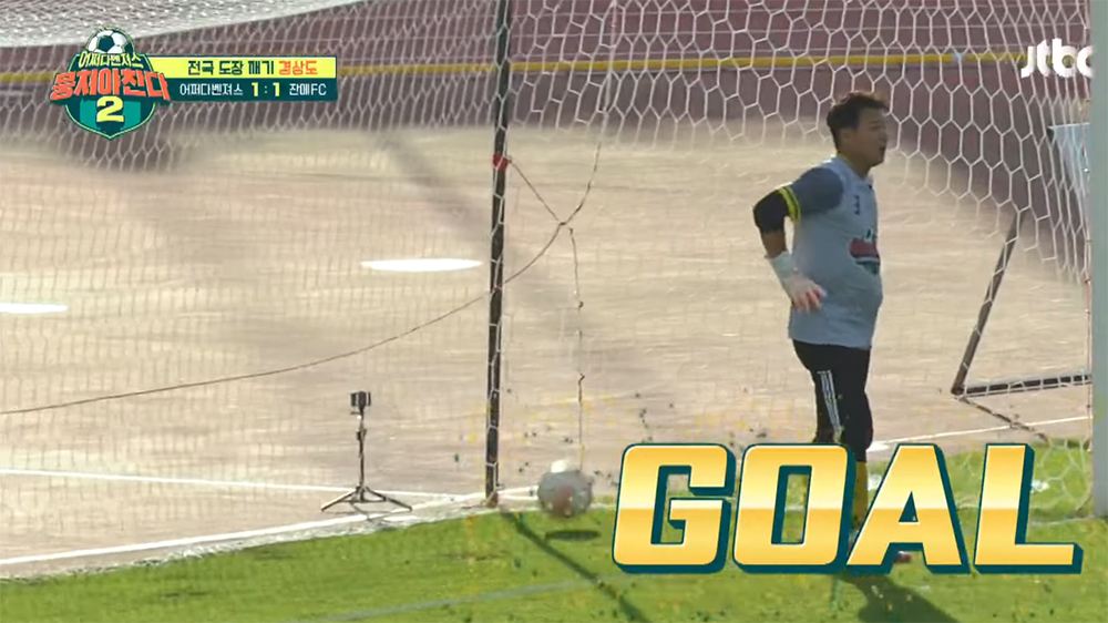 그런데 축구라는 게 참 쉽지 않다는 것을 증명하듯이 아직은 골키퍼가 익숙하지 않은 이형택을 노린 상대 팀의 전략으로 동점골을 만들고 30초도 되지 않은 상태에서 역전골을 허용해버린다. 이 역전골은 너무나 허멍하게 들어간 탓에 동점골을 넣었던 어쩌다벤져스 멤버들만 아니라 경기를 지켜보는 팬과 감독 코치진 당황하게 했다.