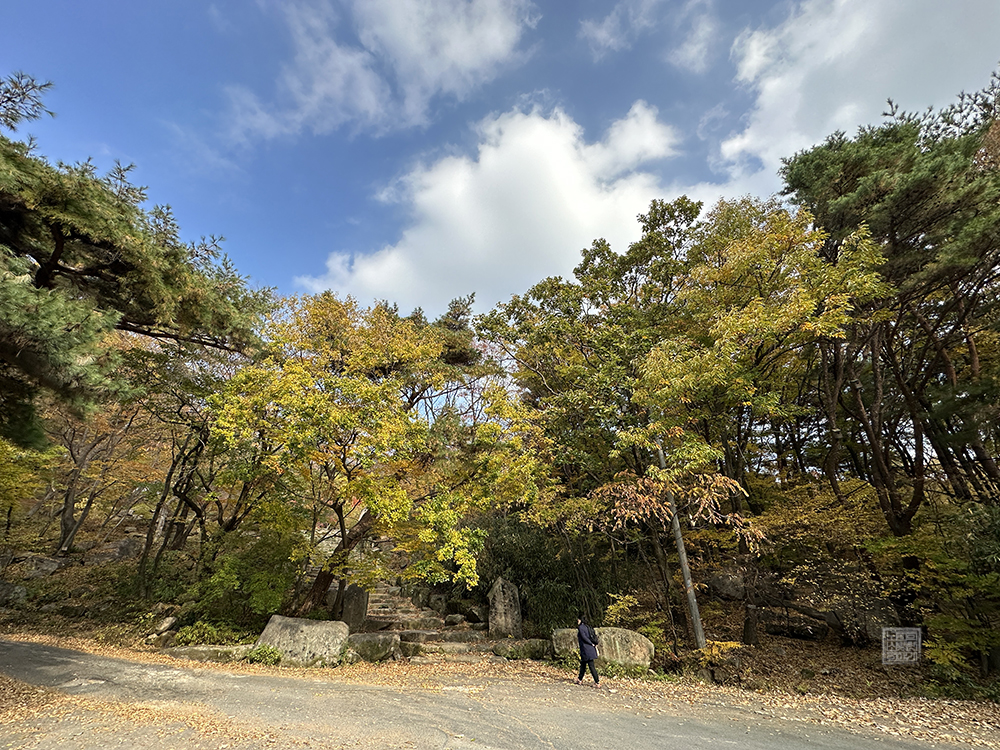 왜냐하면, 은하사 바로 앞에 있는 주차장에서 내려서 올라갈 수 있는 돌계단을 둘러산 단풍들이 너무나 멋진 풍경을 자아내고 있기 때문이다.
