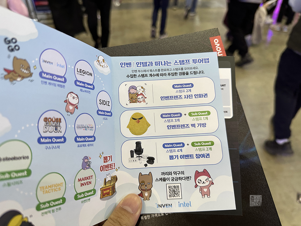 그마나 가능한 건 빠르게 순환이 되고 있는 경품 이벤트 참여존이었는데, 인벤 부스를 비롯해 여러 업체에서 준비한 경품 이벤트 참여는 한 차례 응모를 한 이후 다시금 스탬프 랠리 종이를 받아서 참여하는 게 가능하기 때문에 꾸준히 경품 이벤트만 반복해도 나쁘지 않다. 혹시 모른다. 그렇게 반복 참여를 했다가 덜컥 1등 경품에 당첨이 될지….
