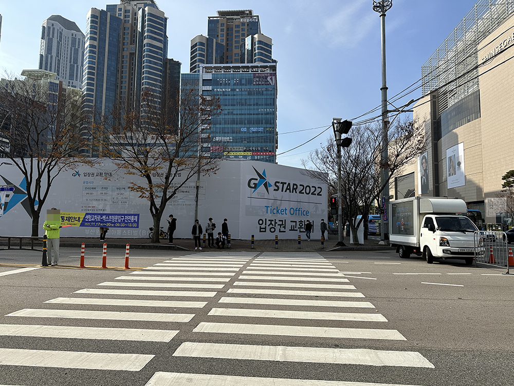 나는 이번 지스타 2022에 참여하기 위해 일찍이 사전 예매를 해둔 이후 지스타 2022의 막이 오르는 목요일(17일) 부산 벡스코를 찾았다. 당시 내가 벡스코에 도착해 센텀시티역 3번 출구에 있는 입장권 교환처에 줄을 서기 시작했던 때가 약 오전 11시 10분 정도였는데, 여기서 줄을 따라서 입장권을 받는 데에 약 20분의 시간이 소요되었다.