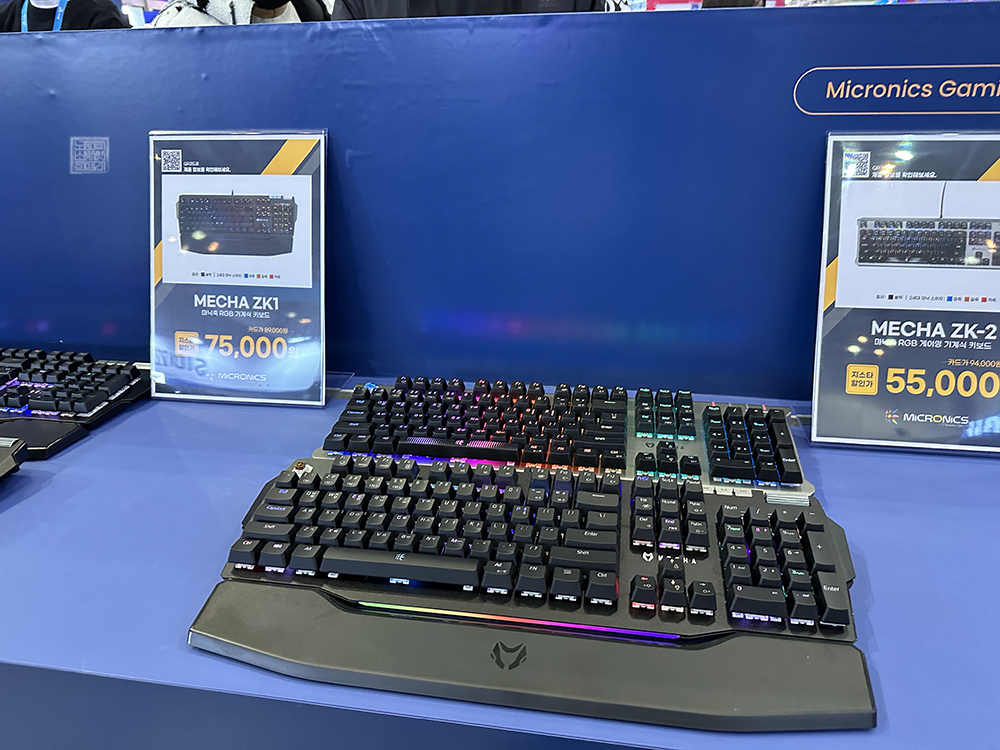 지금 지스타 2022 후기를 작성하고 있는 키보드는 방문했던 당일 마이크로닉스 부스에서 구매한 MECHA ZK1 청축 키보드로, 자사몰에서 판매되는 것보다 만 원 이상 저렴하게 구매할 수 있었다. 그 이외에도 여러 게이밍 키보드를 아주 저렴하게 판매하고 있기 때문에 새로운 키보드를 노리고 있었다면 꼭 현장 판매를 노리도록 하자.