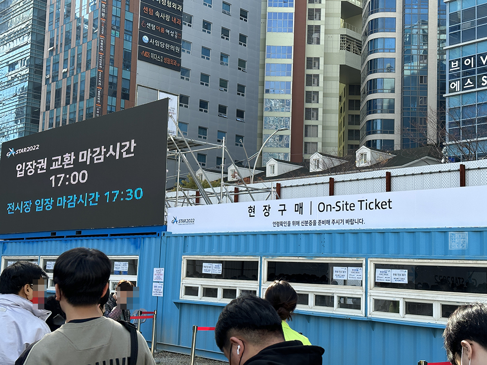 이렇게 긴 시간이 소요된 이유는 그만큼 사람이 많았던 데다가 지나치게 많은 사람이 모일 것을 예상한 운영 측에서 사람들이 최대한 안전하게 줄을 설 수 있도록 꽈배기 형태로 길을 만들어두었기 때문이다. 덕분에 기다리는 사람들은 한참을 돌아가는 형태로 걸어야 했지만 어쩔 수 없었다. 가장 빠른 건 초대권을 소지한 사람들의 줄이었다.