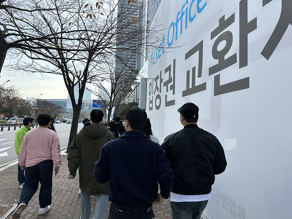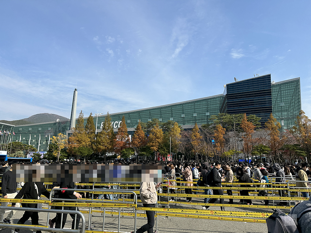 하지만 줄은 여기가 끝이 아니다. 입장 티켓을 교환했다고 해서 곧바로 벡스코 제1전시장 혹은 제2전시장으로 들어갈 수 없었다. 입장 티켓을 교환한 이후에는 입장 대기줄이 있는 곳으로 앞으로 이동해 재차 줄을 서서 기다렸다가 이동해야 했다. 오후가 되었을 때는 이 모습을 볼 수 없었지만, 사람이 몰린 오전에는 입장에 꽤 시간이 걸렸다.