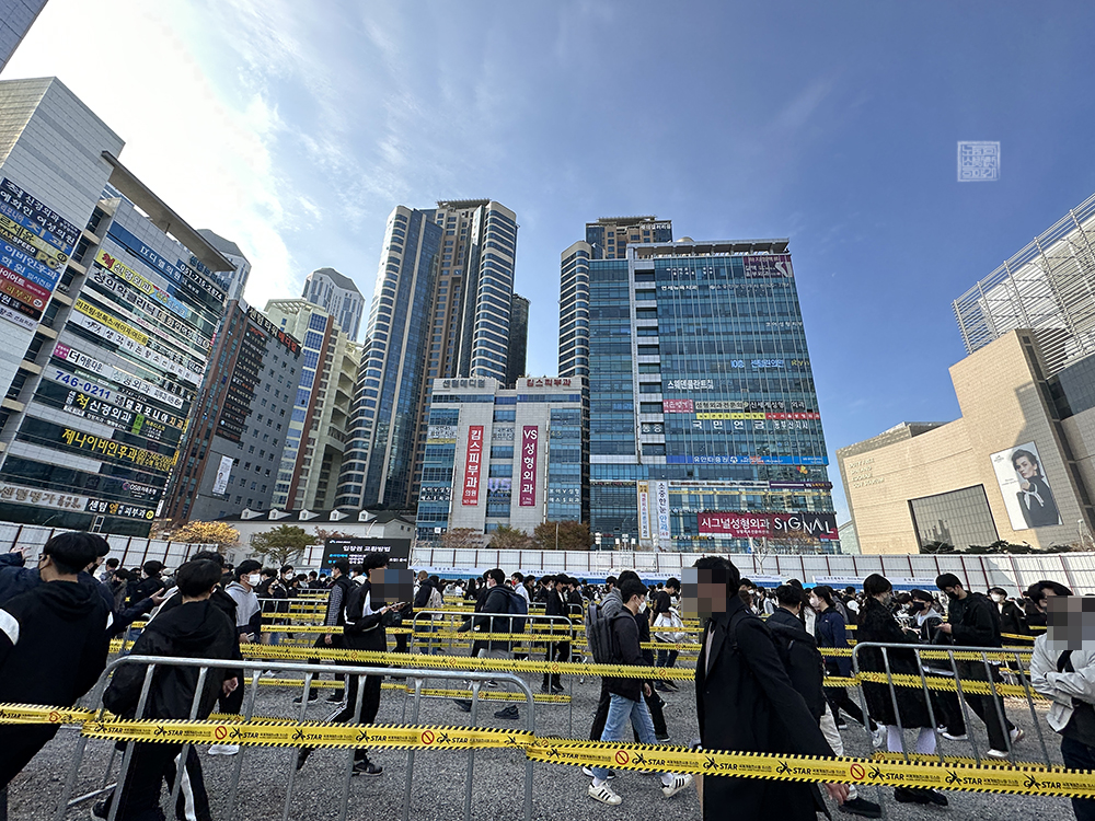 이렇게 긴 시간이 소요된 이유는 그만큼 사람이 많았던 데다가 지나치게 많은 사람이 모일 것을 예상한 운영 측에서 사람들이 최대한 안전하게 줄을 설 수 있도록 꽈배기 형태로 길을 만들어두었기 때문이다. 덕분에 기다리는 사람들은 한참을 돌아가는 형태로 걸어야 했지만 어쩔 수 없었다. 가장 빠른 건 초대권을 소지한 사람들의 줄이었다.