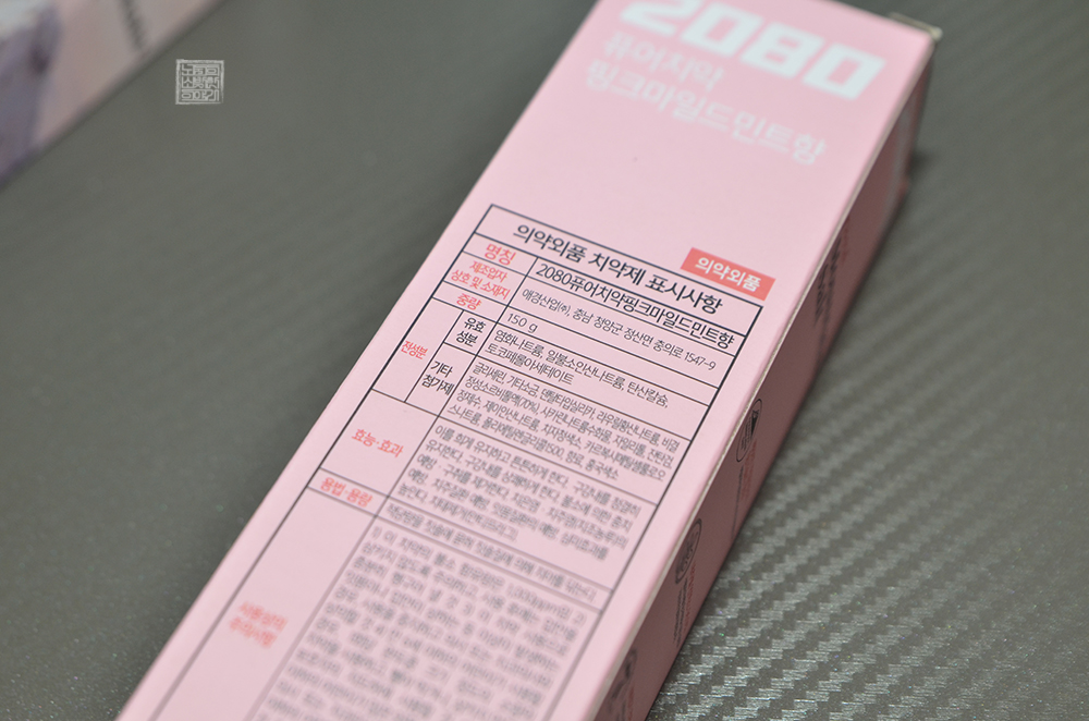 포장지에 적혀 있는 2080 퓨어 마운틴 핑크 솔트 치약의 주요 효능과 효과를 본다면 다른 어떤 치약과 마찬가지로 충치 예방, 잇몸질환 예방과 함께 '부드러운 세정'이라는 문구가 함께 적혀 있었다. 애초에 치약을 사용하는 이유 자체가 충치 예방과 함께 잇몸질환 예방을 통해 구강 상태를 청결하게 유지하기 위함이니 이 두 가지는 기본이었다.