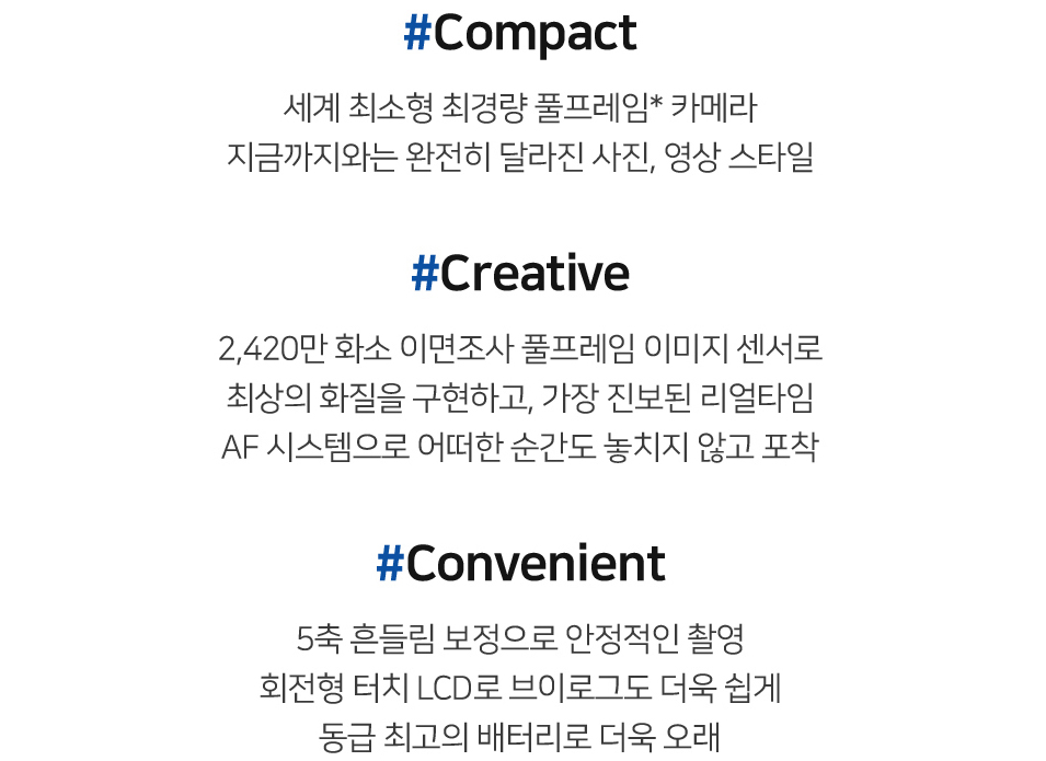 풀프레임 미러리스이면서도 콤팩트 카메라만큼 휴대가 간편한 제품이다 보니 고화질로 브이로그 영상을 촬영하는 데에 이상적이다. 그리고 소니에서 판매하는 렌즈 교환식 카메라인 상위 기종보다 가격이 훨씬 저렴한 데도 가격 대비 뛰어난 성능을 갖추고 있다 보니 어정쩡한 미러리스 제품을 구매하는 것보다 a7c를 구매하는 게 이득이었다.