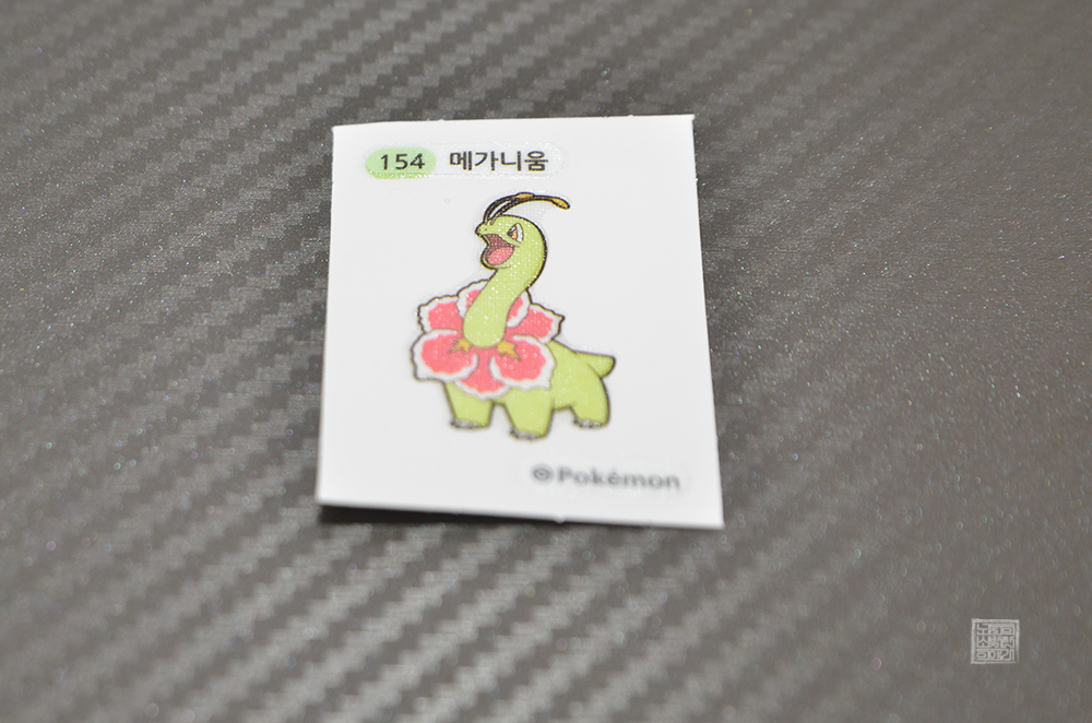 함께 들어가 있던 띠부씰은 '메가니움'이라는 포켓몬으로, 치코리타가 베이리프로 진화한 이후 최종 진화 형태가 바로 메가니움이었다.