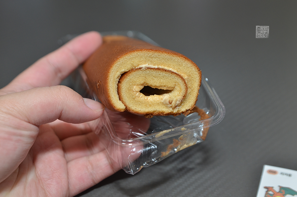 이브이의 솔티드 피넛롤은 제법 단단하게 롤케익이 형태를 잡고 있었기 때문에 포켓몬빵 사이에서 나름 준수한 완성도를 가지고 있다고 생각한다. 개인적으로 땅콩크림빵 같은 빵을 좋아하기 때문에 피넛롤의 베이스가 되어 있는 땅콩크림도 나쁘지는 않았는데, 한 가지 아쉬운 점이 있다면 위 사진에서 볼 수 있듯이 크림이 너무 적었다는 점이다.