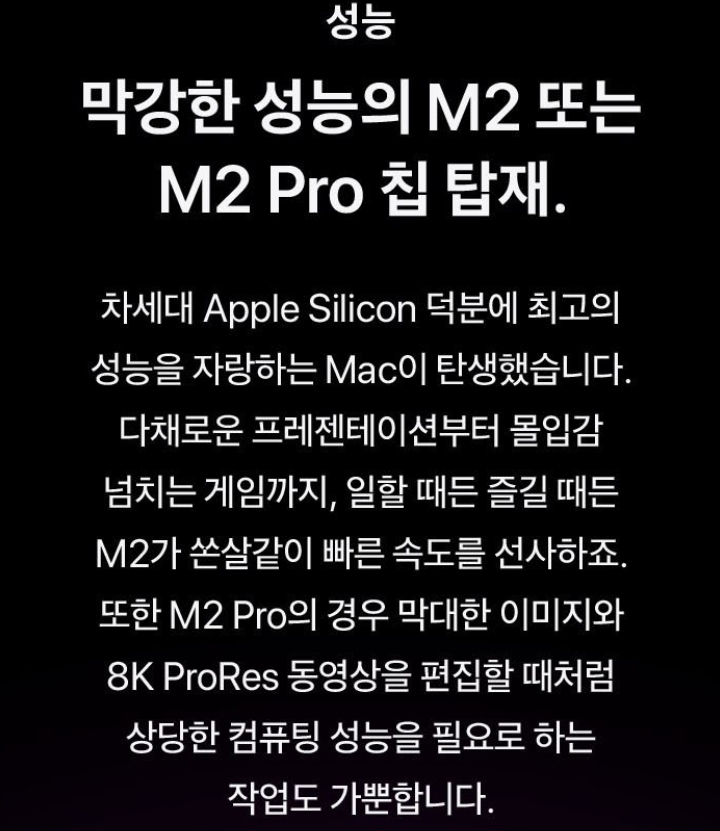 오늘 월요일(13일)을 맞아 애플에서 출시한 2023 맥 미니 M2 시리즈와 2023 맥북 프로 M2 시리즈의 사전 예약이 시작되었다. 애플의 노트북 제품은 그동안 어떤 회사의 노트북과 비교를 하더라도 월등히 뛰어난 성능과 디자인을 가지고 있다 보니 대학생과 직장인을 비롯해 전문가들에게도 두루두루 사랑을 받고 있는 제품으로 손꼽힌다.