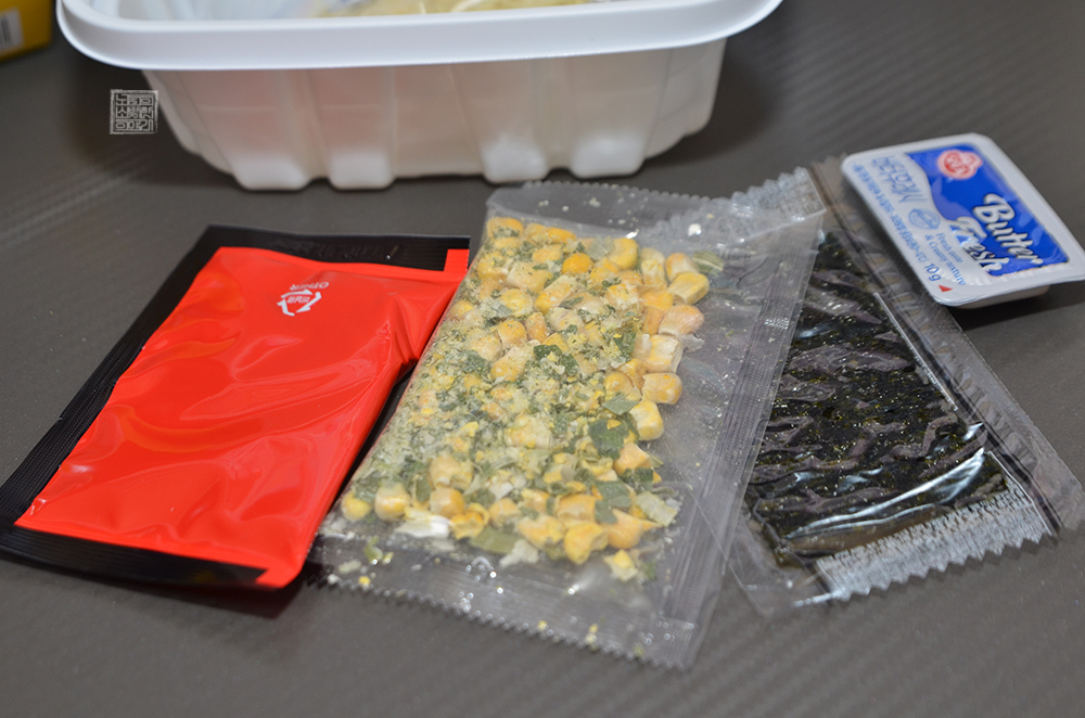 신형만의 된장 버터 옥수수 라멘의 용기를 뜯어서 본다면 다음과 같이 구성되어 있다.