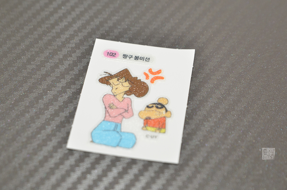 신형만의 된장 버터 옥수수 라멘을 통해 손에 넣을 수 있었던 짱구 컬렉션 스티커에는 '102 짱구 봉미선'이라는 이름으로 엄마에게 혼이 나는 짱구의 모습이 귀엽게 잘 그려져 있었다. 그리고 신형만의 된장 버터 옥수수 라멘 내부에 반숙 계란의 모습을 볼 수 없었지만, 옥수수와 얇게 썰여진 파와 소스, 버터, 김이 들어간 것은 확인할 수 있었다.