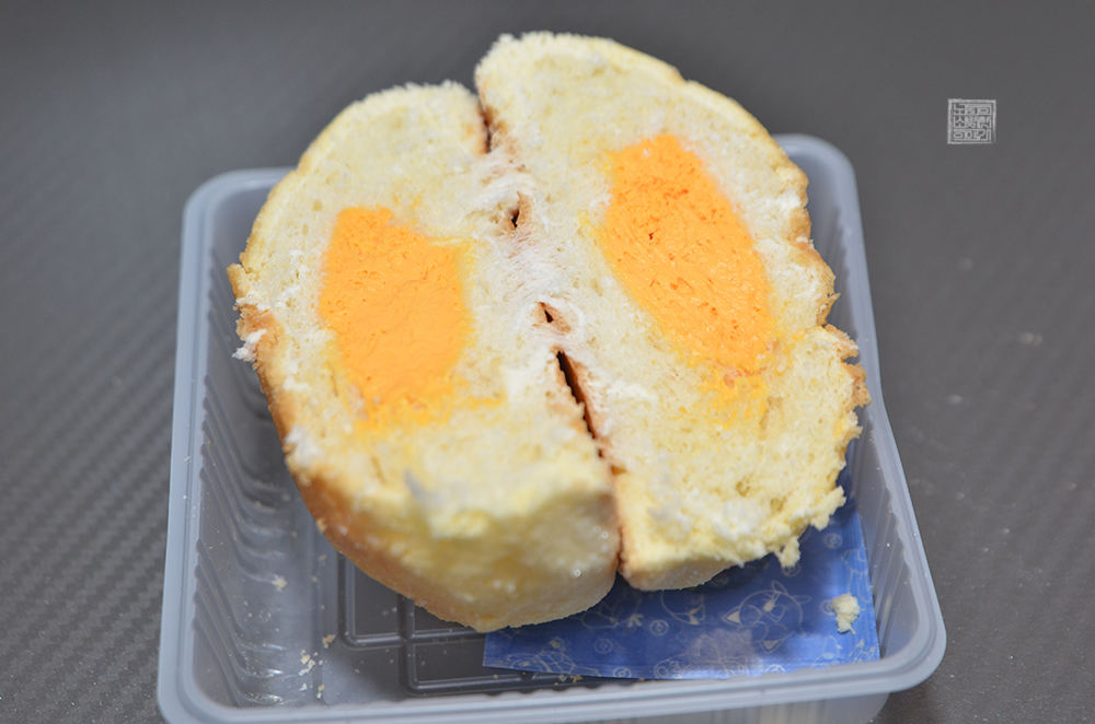 빵의 이름에 '황치즈 크림'이라는 단어가 들어가 있듯이 피츄의 달콤고소 황치즈 크림빵의 내부에는 우리가 잘 아는 체다 치즈 같은 느낌의 색상을 지니고 있는 크림이 들어가 있다. 피츄의 달콤고소 황치즈 크림빵이 들어가 있는 봉지를 뜯었을 때부터 이미 달콤한 향을 맡을 수가 있는데, 설탕으로 추정되는 가루가 상당히 많이 들어 있었다.