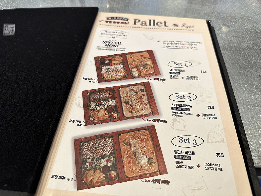 우리는 스테이크 파렛트 세트 한 개와 치즈 피자를 한 개 주문했는데, 음료 같은 경우에는 2인 1개 필수이다 보니 총 2개를 시켜서 먹기로 했다. 어머니와 이모가 한 컵을 쓰고, 나는 따로 한 컵을 쓰기로 한 건데… 다행히 에이드와 주스는 리필이 가능해 2인 1개 기준으로 음료를 주문해서 마신다면 식사를 마무리할 때까지 음료를 마실 수 있었다.