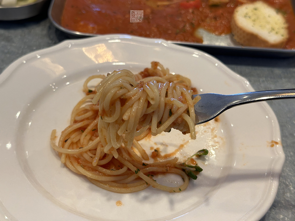 평소 토마토 소스를 진하게 먹거나 혹은 자극적인 맛을 좋아하는 사람에게 오리지널 토마토 파스타는 심심할 수도 있다고 생각한다. 하지만 자극적인 맛을 선호하지 않는 데다가 아이들과 함께 김해 장유 롯데 아울렛을 찾아 쇼핑을 마친 이후 식사를 하고자 한다면 해당 오리지널 토마토 파스타는 딱 좋아 보였다. 개인적으로는 살짝 밍밍했다. (웃음)