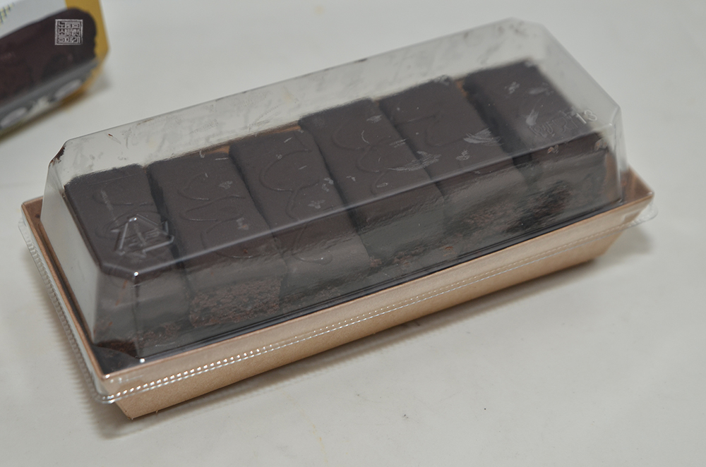 김덕규 과자점에서 판매하는 브라우니는 그런 브라우니와 비슷하면서도 퀄리티가 상당히 다른 브라우니였다. '컨테이너 브라우니'라는 이름이 적힌 포장 종이의 한쪽 구석에서 볼 수 있는 '카카오 함량'을 본다면, 스위스 펠클린 초콜릿 30%와 프랑스 발로나 카카오 파우더 45%가 들어가 있다고 적혀 있다. 이것만으로도 있어 보였다.