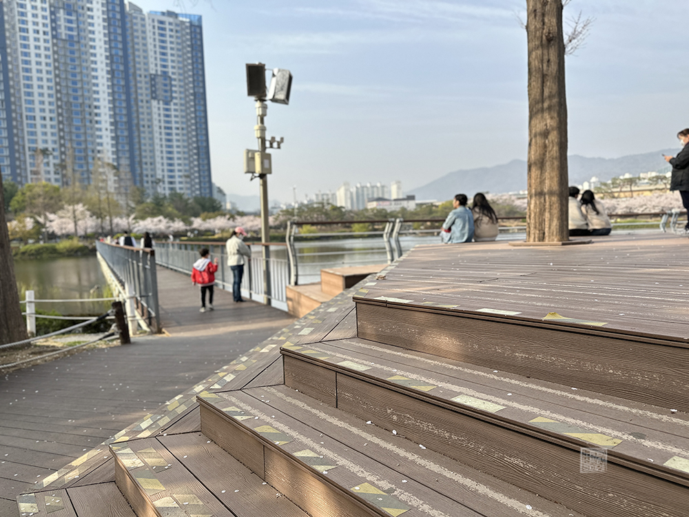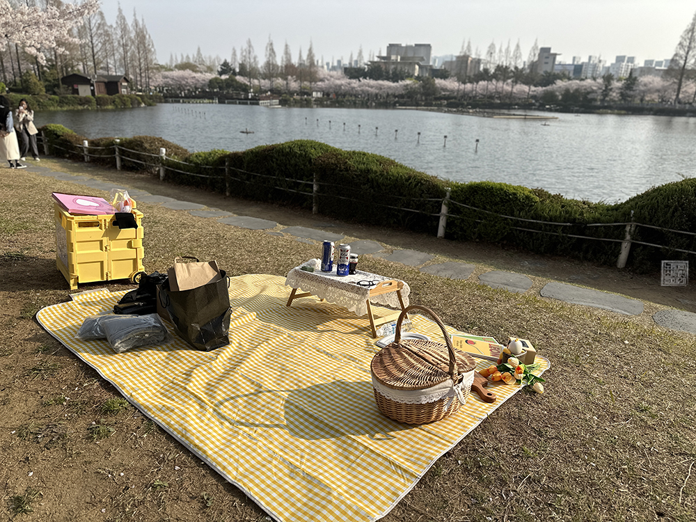 연지공원에서 찾은 사람들이 벚꽃을 즐기는 방법을 다양했다. 접이식 카트에 작은 돗자리와 테이블에 도시락까지 가져와서 정말 멜로드라마 혹은 순정만화에서 볼 듯한 형태로 자리를 잡고 있는 사람들도 있었고, 서로의 사진을 찍느라 연신 분주한 친구들끼리 온 사람들도 있었고, 자전거를 타고 와서 벤치에 앉아 쉬는 사람들도 있었다.