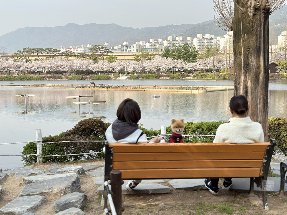 커플이 아닌 사람들은 친구끼리 혹은 가족끼리 찾은 모습을 볼 수 있었는데, 그중에서도 눈에 띄었던 건 반려견과 함께 공원을 찾은 사람들이다. 소위 말하는 '개판'이라고 말할 정도로 많은 개가 있지는 않았지만, 반려견과 함께 벚꽃이 흐드러지게 핀 연지공원을 찾아 반려견의 귀여운 모습을 사진으로 찍는 사람들의 모습도 흔히 볼 수 있었다.