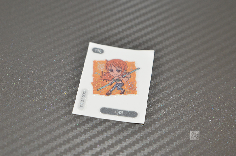 상디의 콘비프 덮밥을 먹고 얻을 수 있었던 <원피스> 띠부씰은 개인적으로 <원피스>라는 작품에서 가장 좋아하는 캐릭터인 나미였다. <원피스> 띠부씰은 121종이 존재한다고 상디의 콘비프 덮밥 종이 포장지에 적혀 있는데, 모든 띠부씰이 위 사진에서 볼 수 있는 스티커처럼 SD 캐릭터로 그려져 있는 것으로 보이니 구매에 참고하도록 하자.