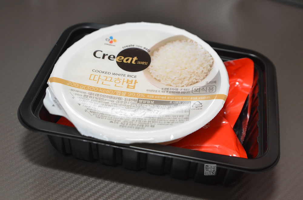 조리를 마친 모습을 본다면 위와 같다. 밥 위에 콘비프 소스를 그대로 부어준 이후 전자레인지에서 3분 10초 동안 돌렸는데… 비주얼은 생각보다 맛있어 보이는 느낌은 아니었다. 이 글을 쓰면서 조리 방법을 다시 읽어 보니 전자레인지에 돌리기 전에 용기 위에서 밥과 소스를 함께 비벼준 이후에 전자레인지에서 하는 조리를 마칠 필요가 있었다.