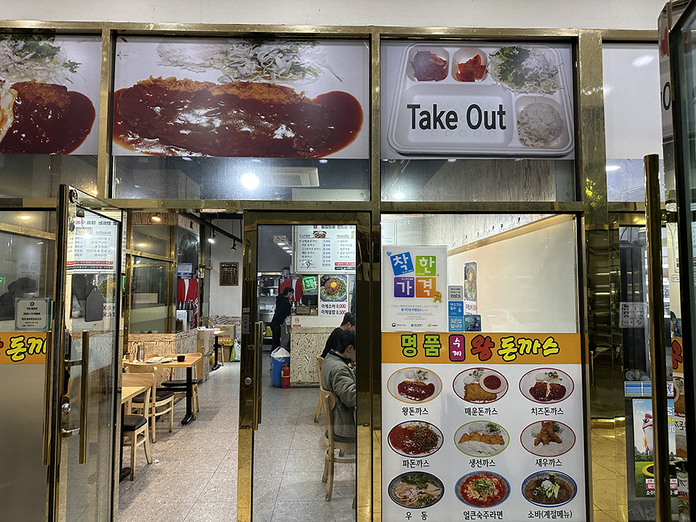 선 결제를 통해 돈까스를 주문하고 나면 크림스프와 단무지, 김치를 먼저 받아볼 수 있고, 시간이 어느 정도 지나면 완성된 왕돈까스를 받아서 먹을 수 있다. 착한 가격의 돈까스 가게인 만큼 크게 특색이 있는 맛은 아니었지만, 우리가 어릴 적 자주 먹었던 돈까스를 떠올릴 수 있는 맛이었다. 아마 남자들은 모두 이 돈까스를 좋아하지 않을까?