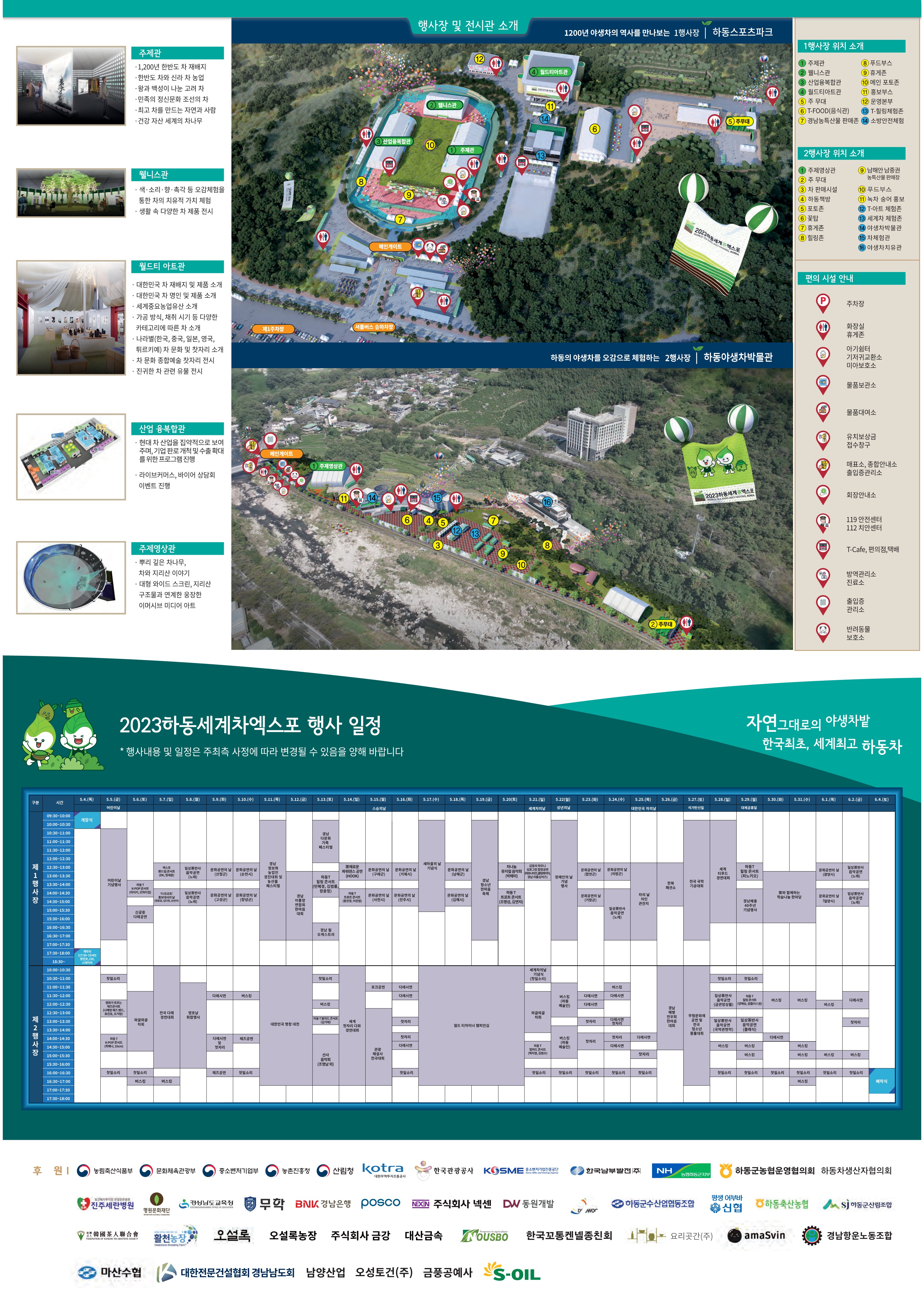 위에서 볼 수 있는 리플릿을 통해 어떤 특별 기획 전시가 이루어지고, 폐막식이 있을 6월 3일(토)에 어떤 이벤트가 준비되어 있는지 상세히 살펴볼 수 있다. 하동 세계 차 엑스포는 관람객이 단순히 두 개의 전시장을 통해 차와 관련된 콘텐츠를 소비하는 것만 아니라 '하동'이라는 지역 자체를 관광 콘텐츠로 소비할 수 있도록 준비되어 있다.