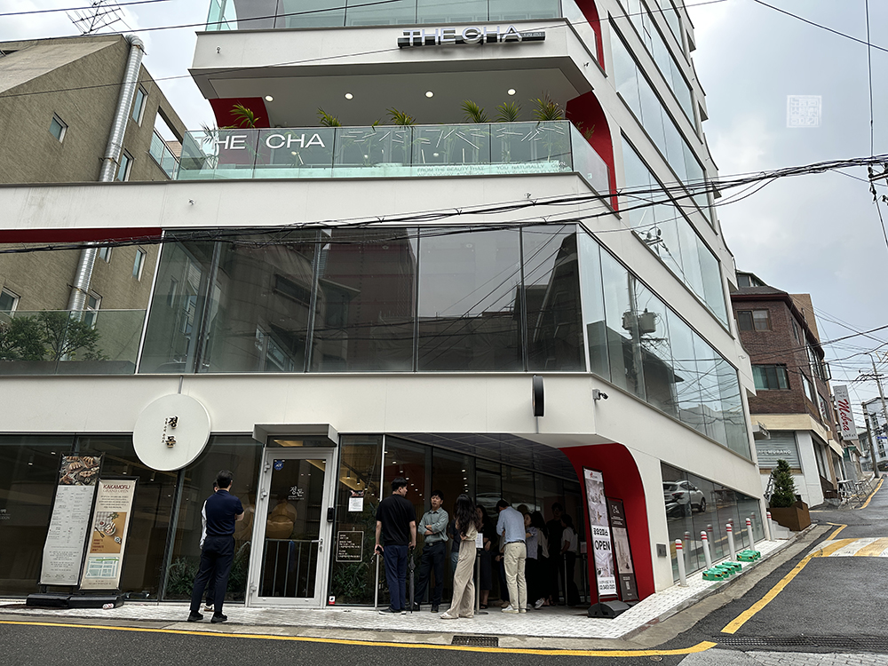 그래서 나는 코엑스 주변의 음식점이 아니라 봉은사역에서 9호선을 타고 신논현까지 이동해서 점심을 먹기로 했다. 위 사진에서 볼 수 있는 건물의 모습이 정돈 강남점이 있는 곳으로, 정돈은 1층이면서 반지하 같은 느낌으로 가게가 위치해 있는데… 언덕길이다 보니 반지하라고 해도 채광이 굉장히 좋아서 1층이라고 생각해도 무관했다.